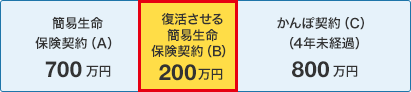 控除額の限度の変更は、新規契約の申込み及びかんぽ生命の保険契約(以下「かんぽ契約」といいます。)が失効し復活させる場合に適用されます。一方、簡易生命保険契約が失効し復活させる場合には、他の簡易生命保険契約からの控除額は従来と同じく300万円のまま据え置かれます。
