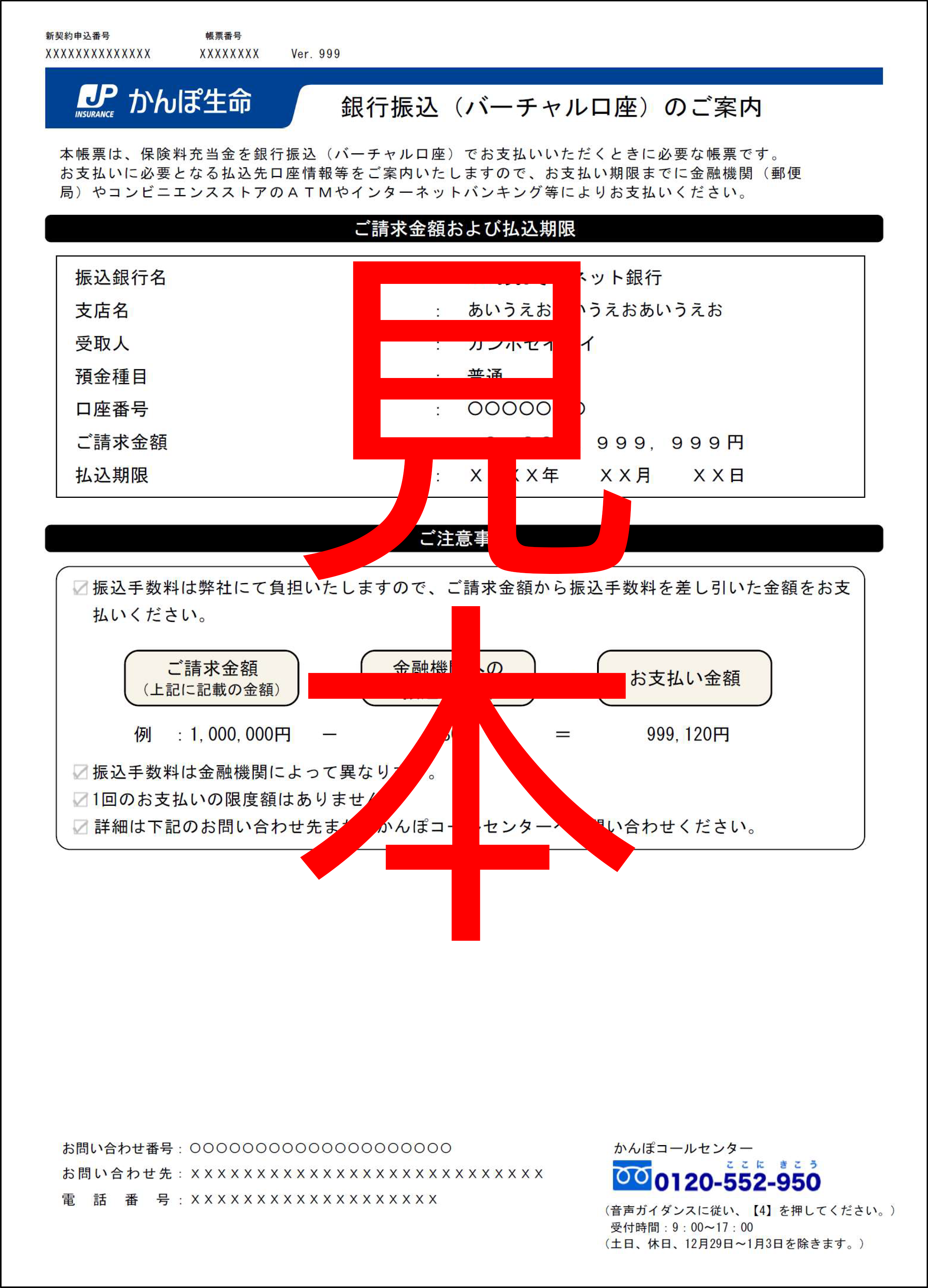 - 一時払終身保険の保険料充当金(第1回保険料相当額)は、銀行振込(バーチャル口座)および払込票のいずれかでお払込みいただけます。