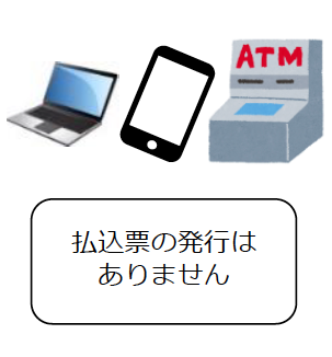 | 概要 | ATMや銀行窓口で払込票により支払、または、ネットバンキングで口座番号等を入力して支払