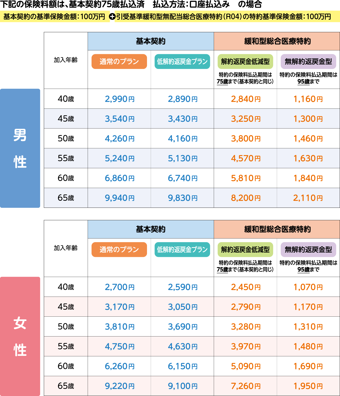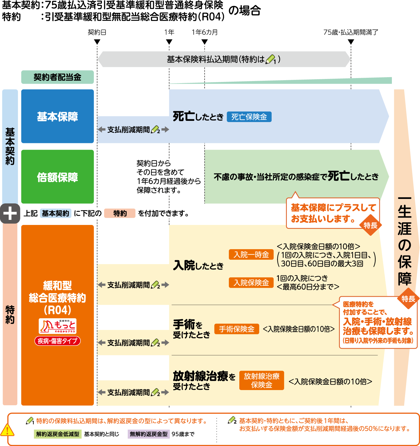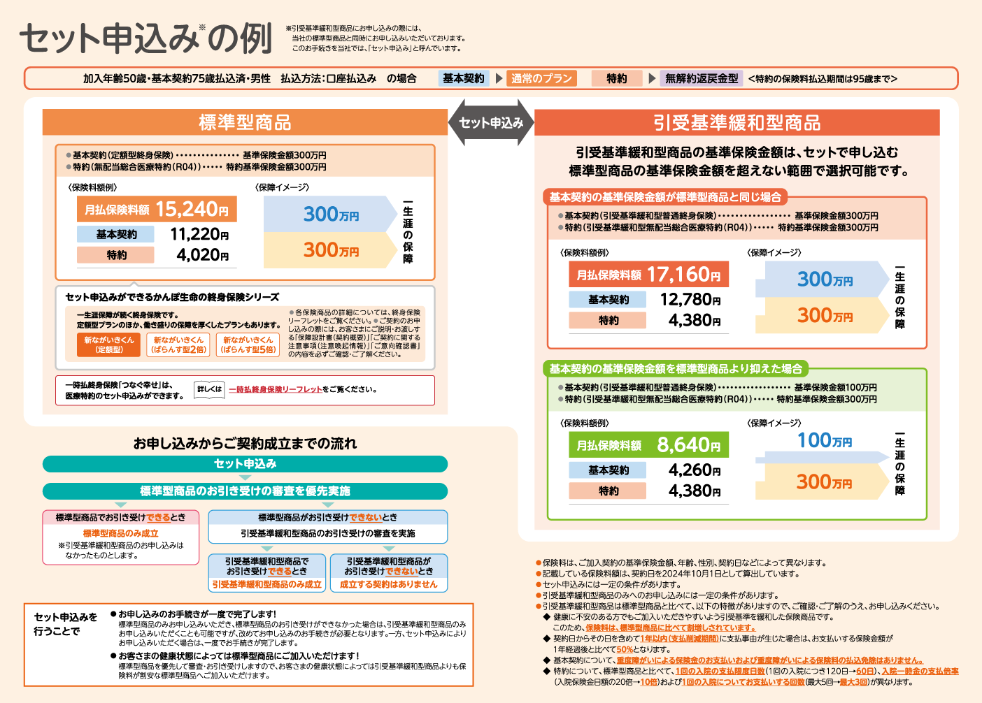 標準型商品と引受基準緩和型商品のセット申込みの例