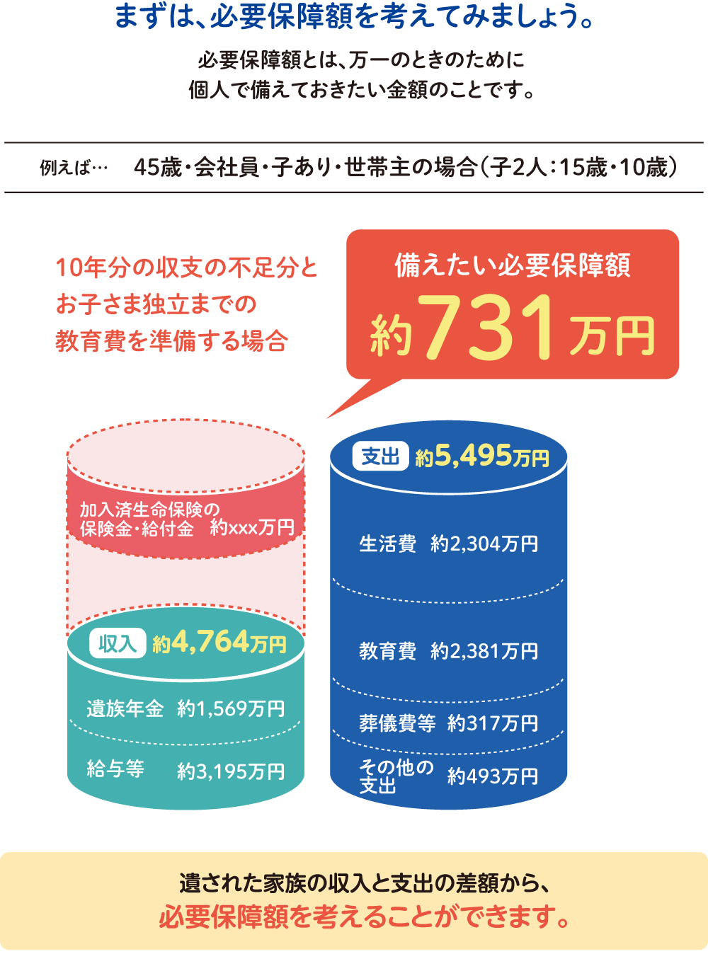 - 夫婦ともに45歳で世帯主(夫)が死亡した前提で算出しています。