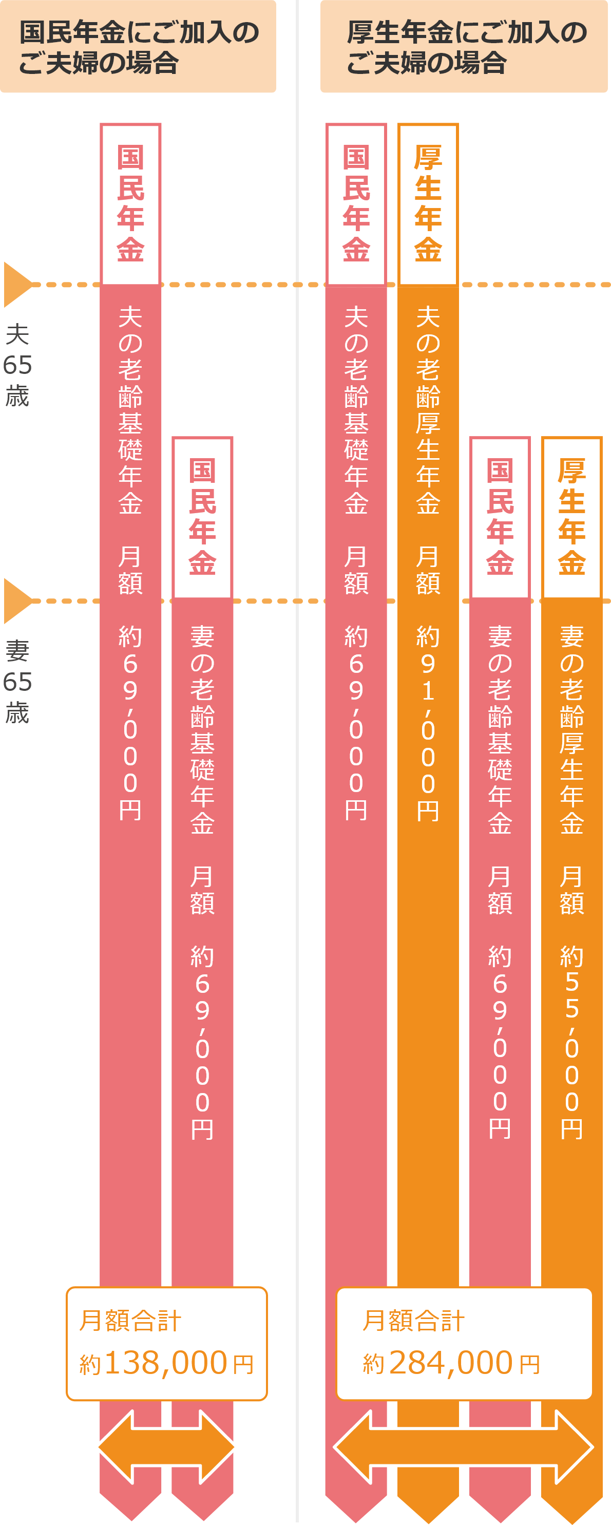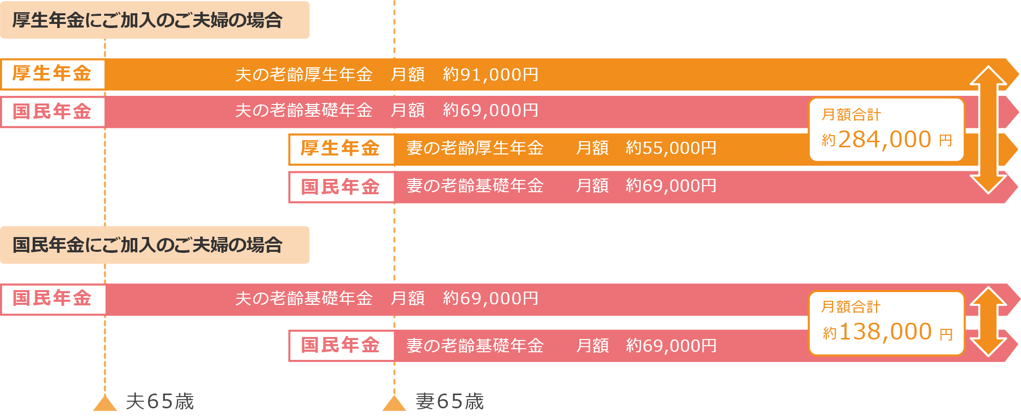 例:夫(平均年収500万円)、妻(平均年収300万円)、加入期間40年の場合