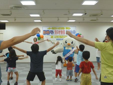 スポーツ祭東京2013・東京多摩国体開催記念イベントとして行いましたので、国体キャラクター「ゆりーと」も子供たちと一緒にラジオ体操に参加しました。大橋先生の楽しいレッスンのおかげで、参加された方も楽しいながらも、真剣に体操をすることができました。
