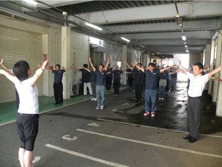 当社の朝は7:45のラジオ体操から始まります。その後各部署の朝礼が行われます。一日のスタートを全員が同じ行動をすることで「形」を合わせています。また安全衛生委員会という活動を通じて、職場の安全対策や社員の健康管理への呼びかけなども行っています。