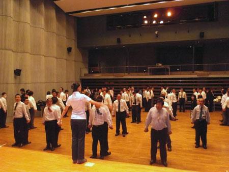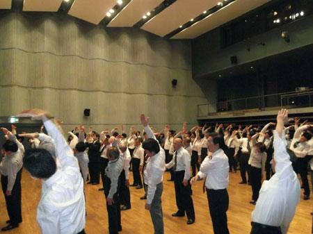 東大和市民会館のホールを貸し切ってのレッスンには、約130名の方が参加され、会場内は終始笑い声に包まれるなど和やかな雰囲気の中ラジオ体操の指導が行われました。