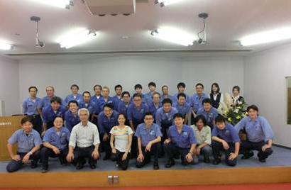 京都工場のレッスン終了後、引き続き、兵庫県加西市へ移動し兵庫工場の皆さまとレッスンを行いました。レッスンは、15時から40分ほど行われ、最後に兵庫工場の皆さまと記念撮影を行いました。
