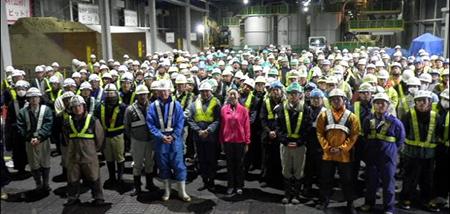 外環市川中JV工事事務所さまは千葉県市川市で東京外環自動車道路の建設を行っています。この現場の建設作業には約500名が携わっており、普段は、毎朝7時45分から3箇所に分かれラジオ体操を行い作業前に体をほぐしているとのことです。