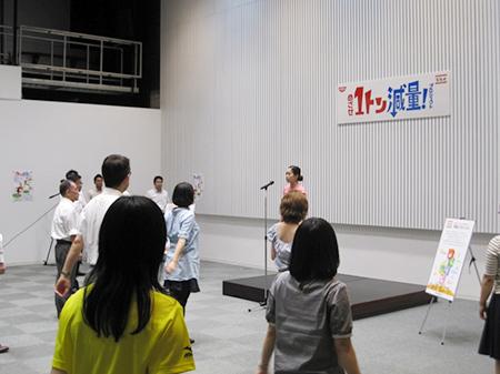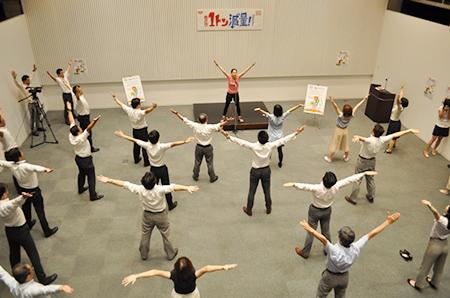 かんぽ生命東京エリア本部がラジオ体操指導委員の大橋美加さんと、東京都新宿区の日清食品ホールディングス株式会社さまに「ラジオ体操☆おでかけワンポイントレッスン」にうかがいました。