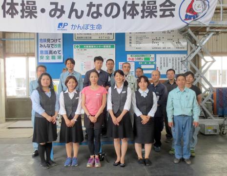 かんぽ生命布施支店が、ラジオ体操指導委員の大橋美加さんと、大阪府枚方市にある株式会社エスシー・マシーナリ大阪機械センターさまに「ラジオ体操☆おでかけワンポイントレッスン」にうかがいました。