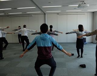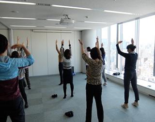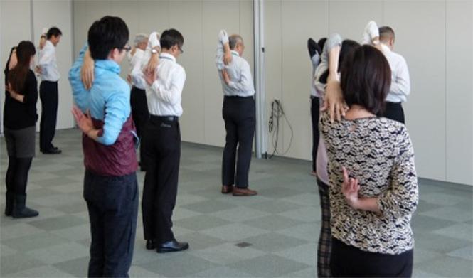 多くの社員のみなさまに参加のご希望をいただいたため、レッスンを2回に分けて実施しました。社長をはじめ管理者や従業員の皆さまが多数参加され、楽しいレッスンとなりました。