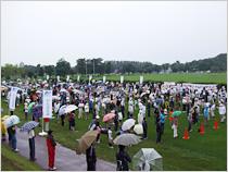 開会前からあいにくの雨に見まわれる中、網走市民、近隣市町村のラジオ体操連盟の方々など、1,500人が参加し、元気良くラジオ体操を行ないました。 ![]() ![]() |