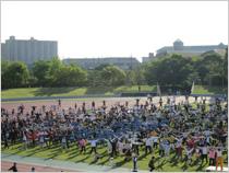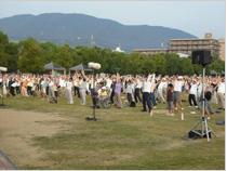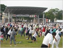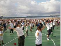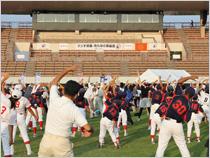 平城遷都1300年を記念し、奈良市鴻ノ池陸上競技場で「特別巡回ラジオ体操・みんなの体操会」が開催されました。 ![]() ![]() |