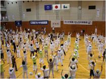 平成23年度夏期巡回ラジオ体操大会は、東京都江東区会場がトップバッターとして開催されました。開催日前日からの大型台風の影響により、雨天会場での開催となりましたが、当日は悪天候にも関わらず577名と大変多くの方々にお集まりいただきました。会場建物内の廊下や空きスペースも利用させていただき、参加の皆さまに、元気にラジオ体操を行っていただくことができました。 ![]() ![]() |