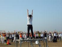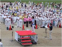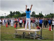 東日本大震災で被害を受けた潮来市において「夏期巡回ラジオ体操・みんなの体操会」が潮来市立日の出中学校グラウンドで開催されました。当日は早朝より小雨模様であったものの『「今、心をひとつに・・・」力を合わせて元気な潮来を!!』をスローガンのもとに約2,500人の参加者があり、被災された方々にエールの気持ちを込めて元気いっぱいに体操を行いました。 ![]() ![]() |