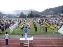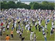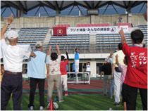 「特別巡回ラジオ体操・みんなの体操会」が東京都あきる野市にある、あきる野市民運動広場で、市民や近隣の方々及び東京都内から約1,200名の参加者で盛大に開催されました。梅雨の時期で天候が心配されましたが、当日は朝から雨もあがり、晴天会場で参加者はのびのびと体操で爽快な汗を流し、無事終了することができました。 ![]() ![]() |