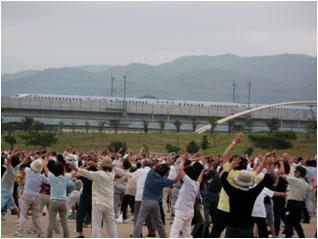 健康づくりと地域のコミュニケーションを図ろうと、市が推進しているラジオ体操。今回は昭和43年8月以来43年ぶりに、九州新幹線開業イベントの一環として行われました。 ![]() ![]() |