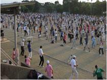 さつま町は,南九州一を誇る川内川が町の中央を貫流し、肥沃な大地を形成しています。自然のめぐみが豊かで、良質な温泉も豊富な人口約24,000人のまちです。鹿児島県の北西部に位置し、ほたる舟や薩摩西郷梅、日本一早いたけのこ生産や畜産の町として知られ、自然の恵みがいっぱいです。「健康づくり推進の町」を宣言し、健康づくりに取り組むさつま町は、町長をはじめ地域が一体となって積極的な周知活動を行った結果、当日は、地元さつま町をはじめ周辺地域の方々も含め、当初の予定より多い2,350人が参加され、元気に爽やかな汗を流しました。 ![]() ![]() |