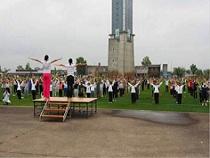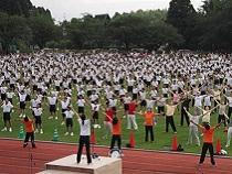 高さ118mのクロスランドタワーがそびえ立ち、芝生の緑が美しい会場に、2,300人を超える沢山の方が集まりました。前日までの雨も上がり、爽やかな空気を胸一杯に、「それっ、イチ・ニ・サン!」と元気よくラジオ体操を行いました。 ![]() ![]() |