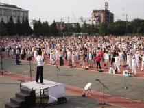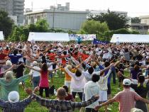 笠間焼きで有名な茨城県笠間市で、巡回ラジオ体操会が行われました。会場となった笠間芸術の森公園のイベント広場は、総勢約4,100人もの参加者でいっぱいとなりました。 ![]() ![]() |