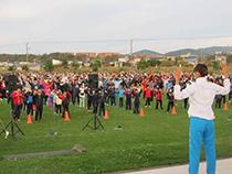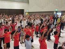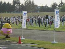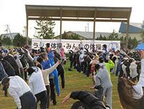 北海道を代表する駅弁「かにめし」で有名な北海道長万部町において、巡回ラジオ体操会を開催しました。 当日は晴れ空の下、会場には約900人が集まり、気温約5℃と秋の寒さが感じられる中、元気よくラジオ体操を行いました。 ![]() ![]() |
