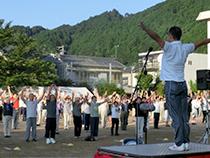 近江牛が有名な滋賀県蒲生郡竜王町において、町制施行60周年記念事業として巡回ラジオ体操会を開催しました。 ![]() ![]() |