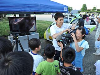 NHKのエコ中継車の展示体験コーナーも設けられていて、スタッフの方に撮影用カメラをのぞかせてもらうなど、子どもたちの注目を集めていました。