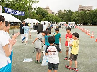 「SPORTS & SUPPORTS KOTO City in TOKYO スポーツ人情が熱いまち 江東区」をコンセプトに掲げる江東区は、健康の保持・増進のため、日ごろからラジオ体操をされている方も多く、会場には1500名以上が集まりました。平日の開催でしたが、登校前にたくさんの子どもたちも参加しました。