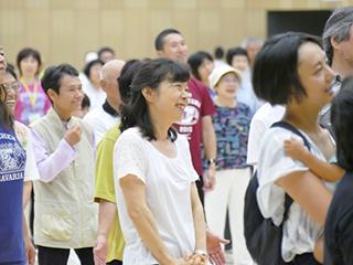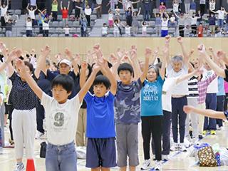 ポイントレッスンでは、多胡先生のお話で参加者の笑顔があふれる場面もあり、一生懸命体を動かすとともに、楽しいひと時となりました。体操会終了後には、家族連れの方や子どもたちが、楽しく記念撮影を行っていました。