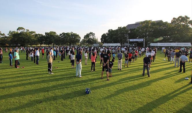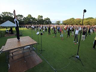 「夏休み中、毎日頑張ってラジオ体操に参加しています!」という小学生たちや、仲間に呼びかけておそろいのTシャツで参加した方など、元気あふれる参加者が続々と集まり、会場には約1600名の参加者が訪れました。