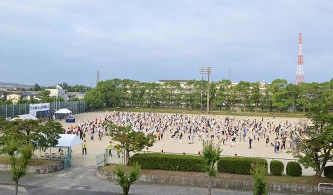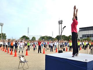 8月5日(金)に滋賀県栗東市の栗東運動公園野球場において「夏期巡回ラジオ体操・みんなの体操会」を開催しました。栗東市は滋賀県南部に位置し、市の北部は平坦地、南部は緑豊かな山地となっています。交通の要衝として、製造業、商業、流通業など多くの企業が立地し、発展を続けています。