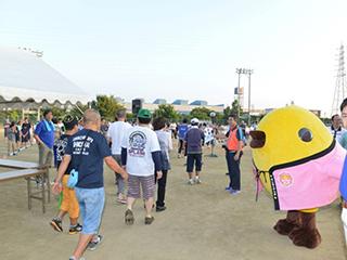安堵町は、今年で町制30周年を迎えます。それを記念して開催された体操会には、約750名の方が集まりました。入口でかんぽ生命の「ゆめぴよ」がお出迎えし、記念写真を撮ってから会場へ向かう家族連れが多く見られました。