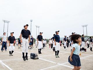 小中学生、家族連れでの参加者が多く、幅広い年代の約1000名の方が、遠賀総合運動場公園多目的グラウンドに集まりました。野球チームや剣道教室で参加している子どもたちもいて、会場は活気にあふれていました。