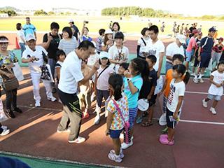 毎日会社でラジオ体操をしている方が、「いくつか間違えたやり方をしていて、改めて正しい動作がわかった!」と感想を話したり、子どもたちが講師の多胡先生を取り囲んで楽しく談笑する場面もあり、とても有意義な体操会となりました。