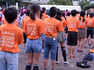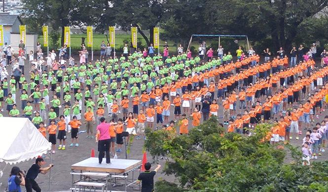 開校100周年を迎えた高麗川小学校のグラウンドには、色とりどりの100周年記念Tシャツを着て集まった高麗川小学校の児童を中心に、約1300名の方が集まりました。