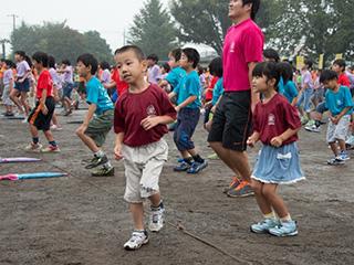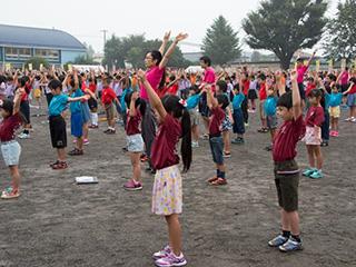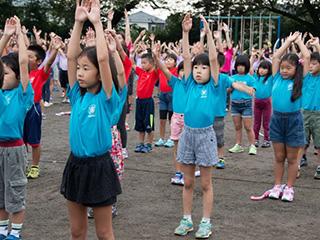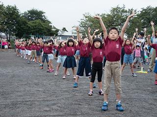 9月4日(日)に埼玉県の日高市立高麗川小学校において「特別巡回ラジオ体操・みんなの体操会」を開催しました。日高市は県の南西部に位置し、人口は約5万6千人。高麗川が蛇行してできた巾着田と呼ばれる平地には、500万本を超える曼珠沙華が咲き渡り、毎年多くの観光客でにぎわいます。