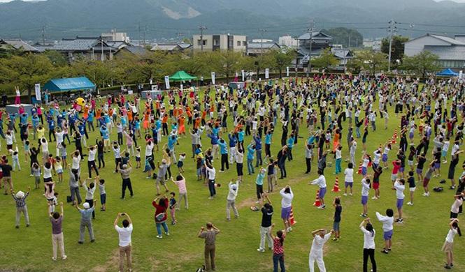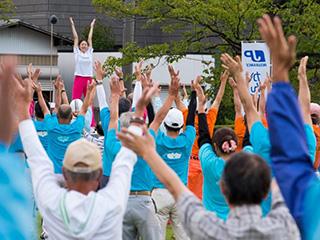 9月11日(日)に福井県坂井市の霞ケ城公園ふれあい広場において「特別巡回ラジオ体操・みんなの体操会」を開催しました。坂井市は福井県の西部にあり、日本海に面しています。人口は約9万3千人、今年市制施行10周年を迎えました。市内には今では数少ない木造天守閣を持つ「丸岡城」や、高さ25メートルの岸壁が続く国指定の名勝「東尋坊」があり、豊かな自然と歴史が息づいています。