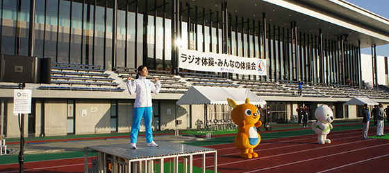 当日は晴天にも恵まれ1,000人を超える皆さまにご参加をいただき、楽しく元気にラジオ体操を行えました。これからもラジオ体操などを通して、皆さまの健康作りのお役に立ちたいと考えております!