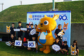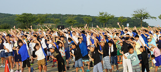 猛暑の中でしたが、2,300名を超える大勢の市民が参加されました。 当社の企業キャラクター「かんぽくん」や茨城県のゆるキャラ「いばラッキー」もみんなの前で体操し、大盛況のなか開催できました。
