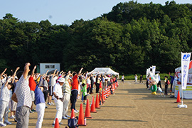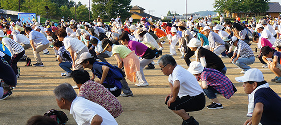 晴天の中、お子様からご高齢の方まで、約1,200名の方々が厳しい暑さに負けず元気に体操を実施していました。 参加者の皆さんが汗を流しながら元気に体操をする姿を見て、私たちも元気をもらいました。