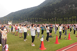 当日は天候に恵まれ、早朝から約2,000人の方々に参加していただきました。 全員で元気に楽しく体を動かし、ラジオ体操を通じて、参加者のみなさまがひとつになるのを感じました。 健康づくりと地域交流! 何にでも役立つラジオ体操、最高です!