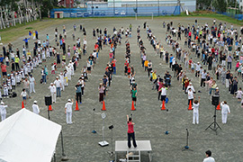 昭和58年から阿蘇公園にてラジオ体操を始めました。当初は少人数でしたが、今では40名を超える多くの方と一緒に行っています。 ブラジルでもラジオ体操が行われていると聞きました。日本以外でも行われているラジオ体操を少し誇りに思います。 これからも皆さんと一緒に楽しみながら継続していきます。