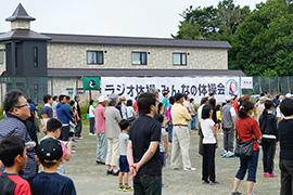 早朝にもかかわらず、ご年配の方から小さいお子さんまで、大勢の方にご参加いただき、大変嬉しかったです。 巡回ラジオ体操会の記念にフォトスペースで撮影されていた方たちの楽しそうな姿から、私まで笑顔になりました。
