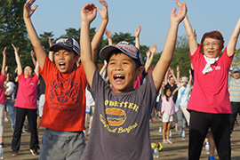 連日の猛暑にもかかわらず、会場には1,300名を超える参加者にお集まりいただき、ラジオ体操90周年にふさわしい盛大な体操会となりました。