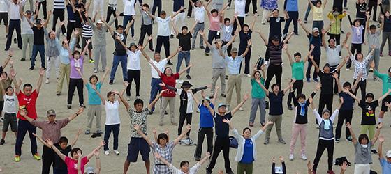 月曜日の朝にもかかわらず、清々しい天気の中、予定を上回る多くの方が参加され、会場が一杯となりました。 参加者の皆さんの笑顔と、元気な体操により、大変すばらしい夏期巡回ラジオ体操・みんなの体操会を開催することができました。