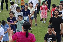 いつもは地域で80名くらいが集まるラジオ体操会に参加していますが、今日は大勢の人たちと体操が出来て楽しかったです。 岡本先生のウォーミングアップも楽しみながら行い、ピアノ生演奏の中での体操は、いつもの体操とは音の響き方や感じ方が違い、楽しかったです。