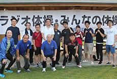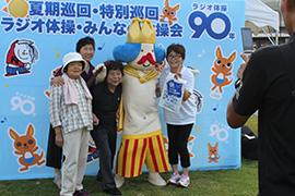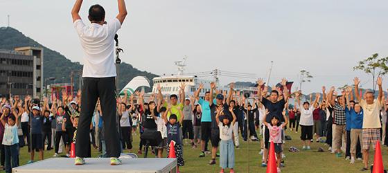 青々とした芝生、隣は港、目の前にはミカン畑が広がる会場で、心地よい風を感じながら、地域の皆さまと一緒にラジオ体操を行いました。 参加していただいた皆さまの笑顔を見て、これからも地域の皆さまの健康増進のため、ラジオ体操を広く普及させるため、精一杯支援をさせていただきます。