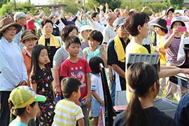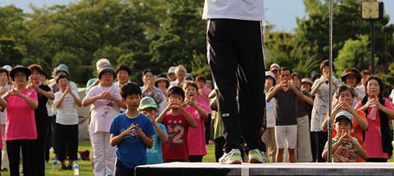 当日は、予想を上回る約700名の方にご参加いただきました。参加者の皆さまは、開会前から元気いっぱいで、本日の開催を待ち望んでいたご様子でした。 フォトコーナーも大変好評をいただき、皆さまの笑顔を見ながら、夏期巡回体操会の最終日を終えることができました。