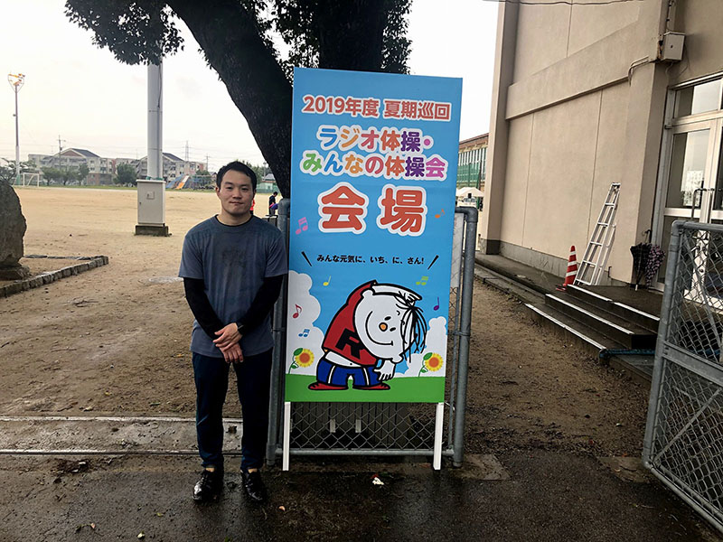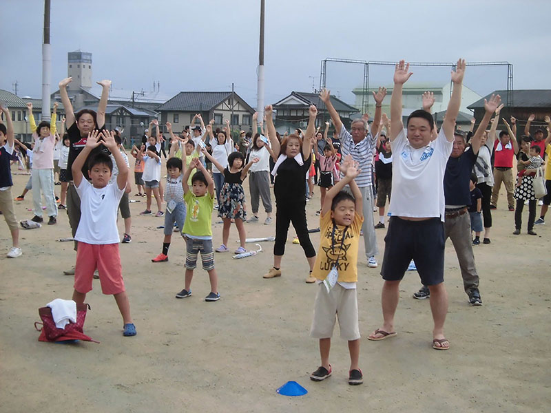 直前まで雨が降っていた為、屋外での開催は難しいと思っていましたが、ラジオ体操の音楽が流れた瞬間、雨がピタリとやみ、会場の皆さまの気持ちがそうさせたのだと感じました。