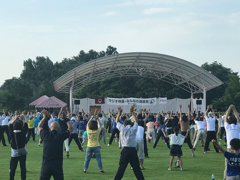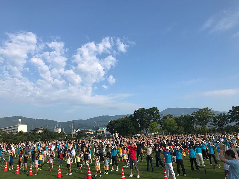 今夏、台風の影響もあり開催できるか心配していましたが、当日は晴天に恵まれ、予想をはるかに超えた約600名ほどの参加者が集まる体操会となりました。