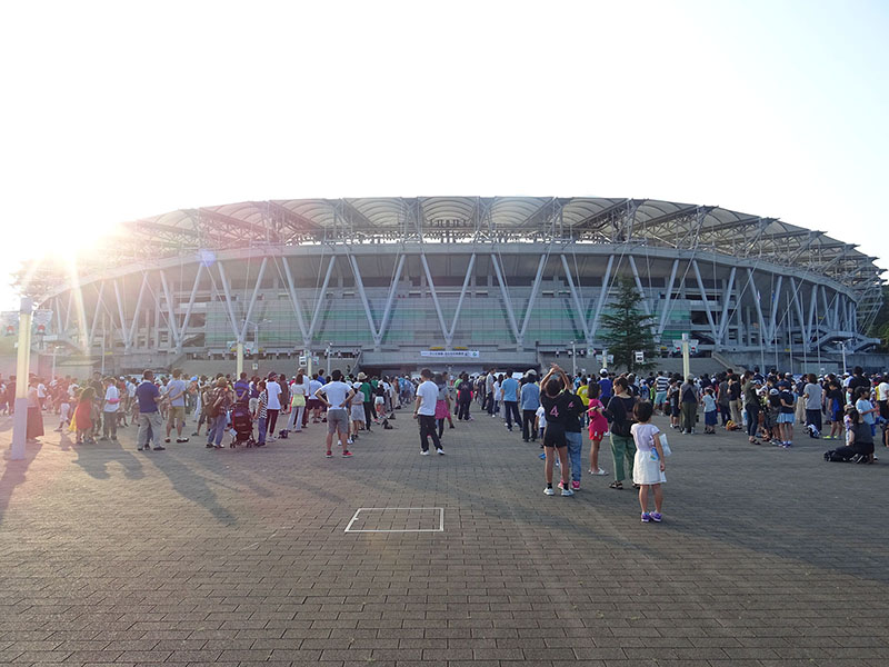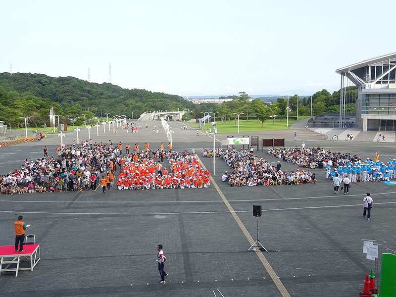 晴れ晴れとした空のもと、ラジオ体操開始時刻には少し汗ばむ陽気となった小笠山総合運動場(袋井市エコパスタジアム)には、約2,200名に及ぶ人々が集まりました。